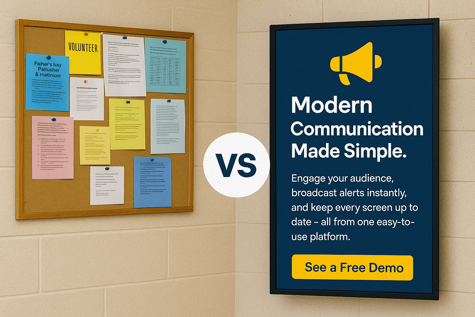 Engage your audience, broadcast alerts instantly, and keep every screen up to date — all from one easy-to-use platform.